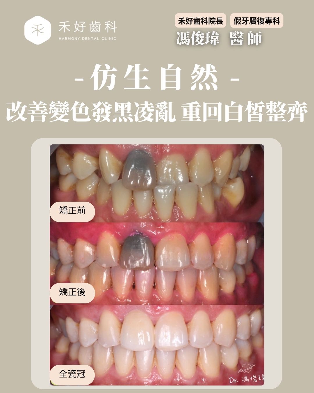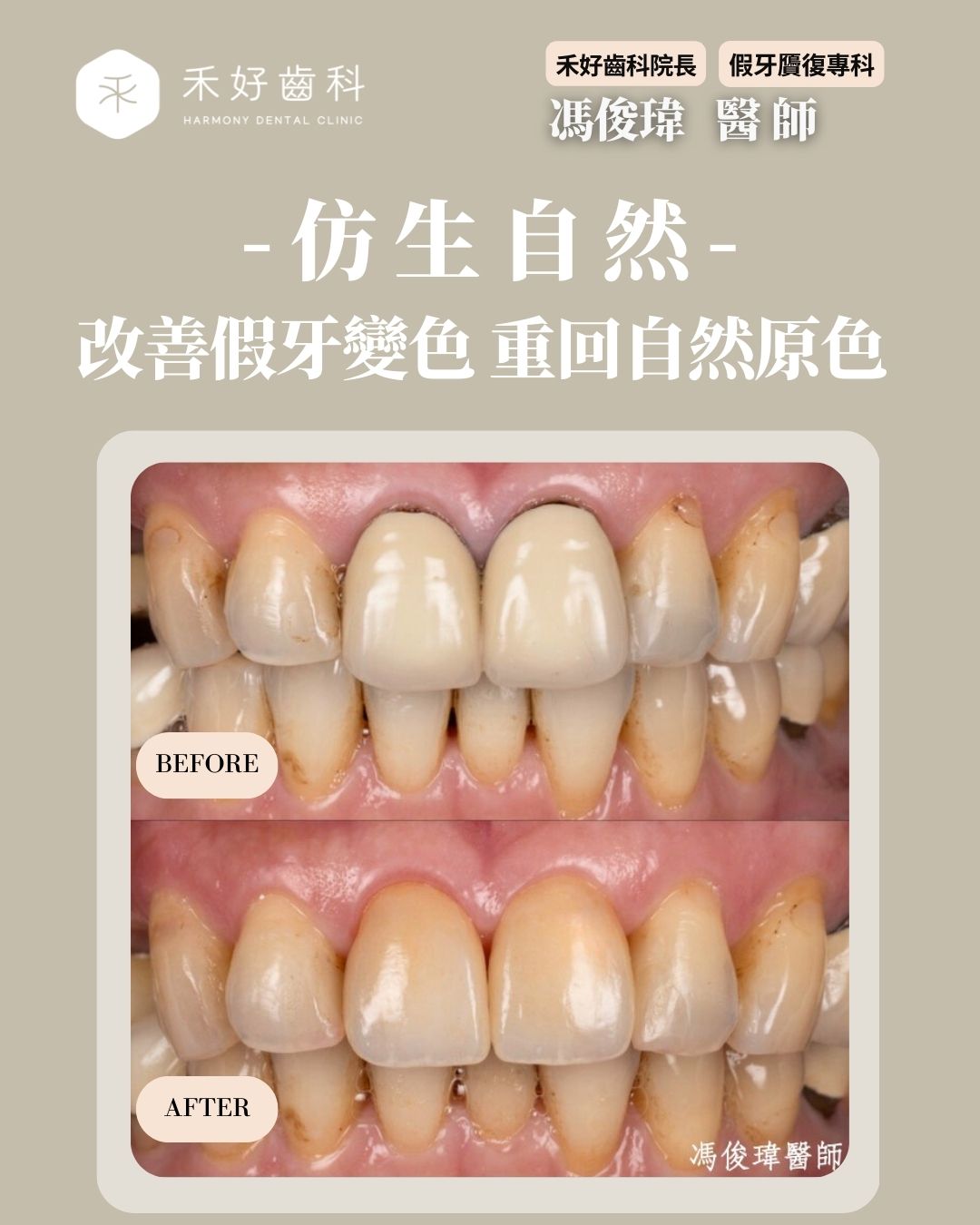 假牙變色?牙齦邊緣黑黑,笑起來好尷尬?馮俊瑋醫師分享前牙美感:極致白皙或仿生自然?前牙美觀區重回白皙好看的選擇有哪些?
